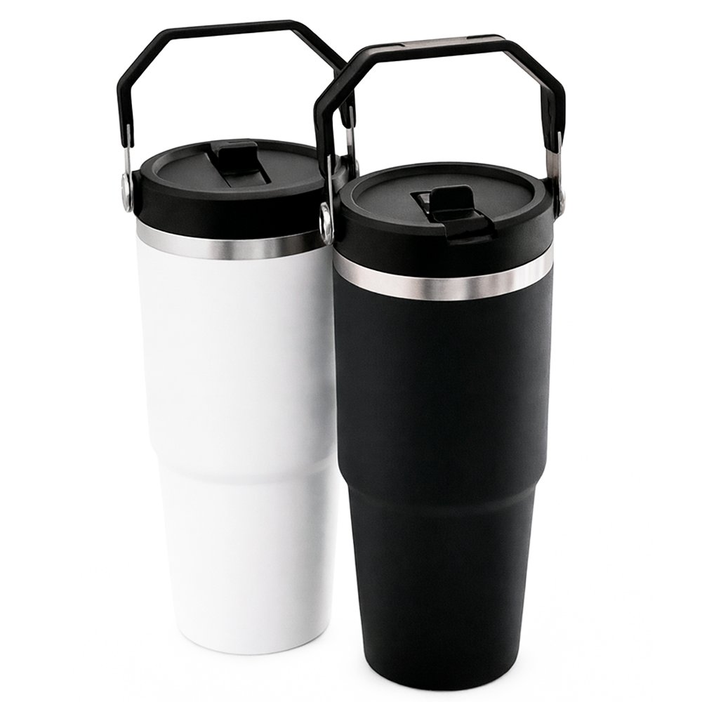 Acero inoxidable de doble capa térmica que conserva calor entre 8-10 horas. Tapa de seguridad con manija y pitillo. De 900 ml.